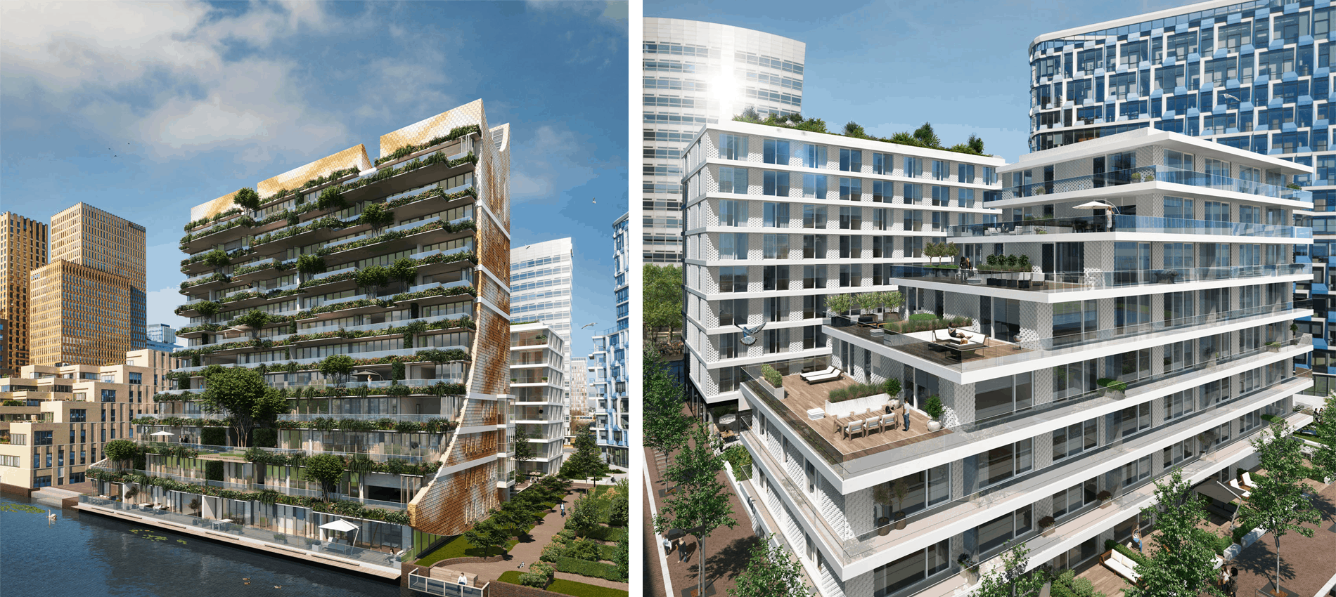 De gigantische terrassen van de appartementen met weldadig groen zorgen voor optimale privacy. Het komvormig dak vangt zowel zonlicht als regenwater op voor de bewoners en voor de flora in, aan en om het gebouw.